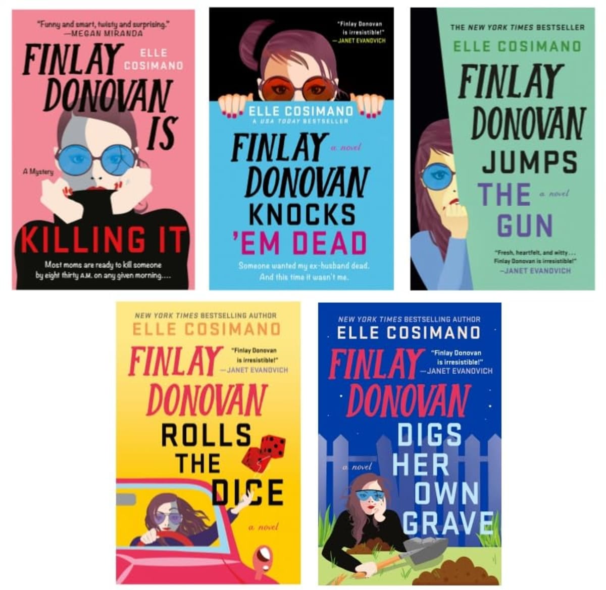 Having read five books to date in Elle Cosimano's Finlay Donovan series (Finlay Donovan Is Killing It, Finlay Donovan Knocks 'Em Dead, Finlay Donovan Jumps the Gun, Finlay Donovan Rolls the Dice, Finlay Donovan Digs Her Own Grave), I can say that the first two hold a special, laugh-out-loud place in my heart, but they are all must-reads for mystery lovers, and I can’t wait for the sixth to come out. The sheer genius of an accidental assassin navigating single parenthood with sticky fingers and dirty diapers—what any parent or child caregiver will instantly recognize and hilariously relate to— is a comedic goldmine. Picture this: our protagonist, Finlay, having to rearrange child car seats to accommodate a dead body in her minivan. These riotous situations, all while she’s trying to solve a crime and clear herself, or others, are what make the series a delight to read.